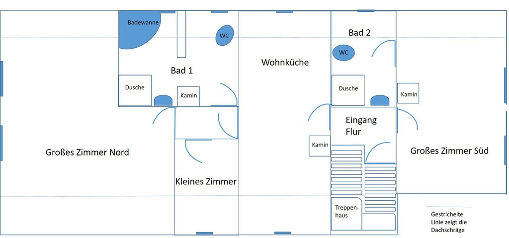 Großzügige Dachwohnung mit 2 Tageslicht-Bädern und großer Wohn-/Essküche. Auch für 2er WG geeignet - siehe Fotos ....